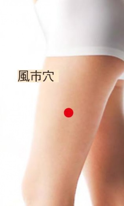 1. 風市穴:正常站立時,手臂自然下垂,中指指尖擺放處就是這個穴位。