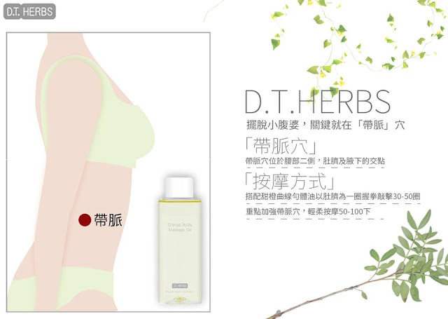 搭配含有絲柏、甜橙、茉莉精油的D.T HERBS甜橙曲線勻體油效果更好。